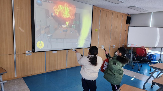 소화기 사용법을 배우고 열심히 불을 꺼봅니다.