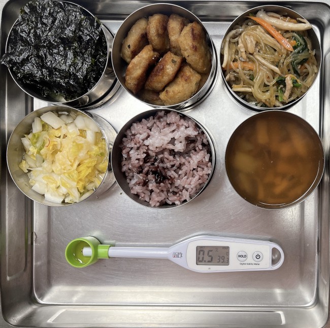 26.3.24.(화) 작성자 영양교사 작성일 2026-03-24 | 조회 65 | 본문 점심 식단 :6~7살_찰흑미밥, 오징어국, 영양잡채, 꼬마고기완자, 직화돌김, 배추김치5살_찰흑미밥, 오징어국, 영양잡채, 꼬마고기완자, 직화돌김, 백김치축산물 이력번호 : 돼지고기(국내산)_L12603233256008종일반 간식 : 짜장떡볶이종일반 간식변경 : 달콤떡볶이에서 짜장떡볶이로 변경되었습니다. 작성자 : 로그인을 하셔야 작성가능합니다.