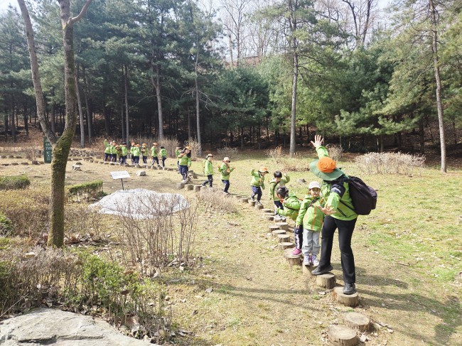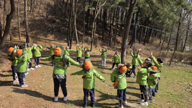 숲과 인사도 나누고 몸풀기 체조도 하고
