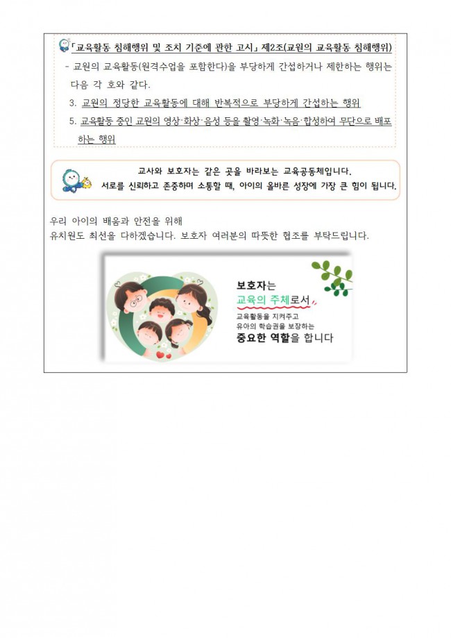 유치원 내 불법 녹취금지 및 학생 권리 보호에 대한 협조 요청