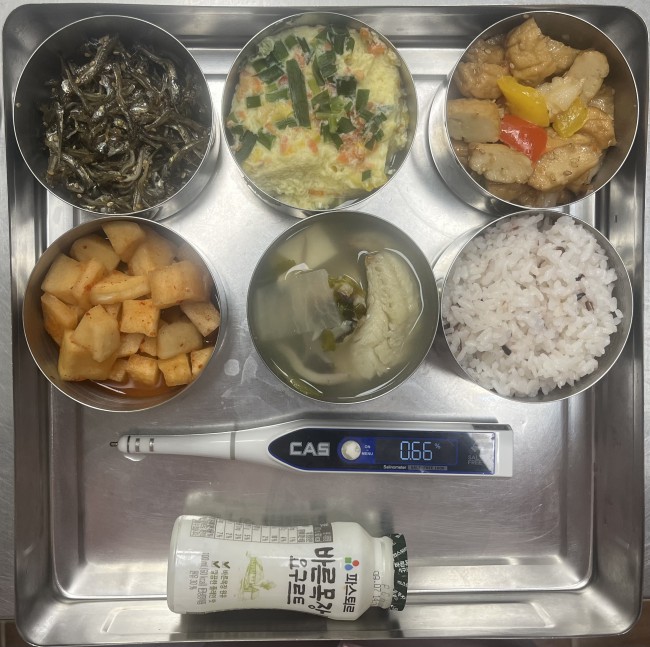 2025.8.27(수) 작성자 영양교사 작성일 2025-08-27 | 조회 66 | 본문 점심 식단 : 흑미밥, 미나리대구탕, 삼색계란찜, 파프리카볼어묵볶음, 잔멸치조림, 깍두기, 바른목장요구르트종일반 간식 : 꿀떡, 전통차 작성자 : 로그인을 하셔야 작성가능합니다.