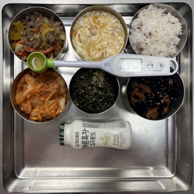 2025.7.23(수) 작성자 영양교사 작성일 2025-07-23 | 조회 63 | 본문 점심 식단 : 잡곡반 순두부찌개, 소고기채소볶음, 연근콩조림, 들기름깻잎나물무침, 배추김치, 바른목장요구르트축산물 이력 번호 : 돼지고기 뒷다리(국내산)_L12507214473222, 쇠고기앞다리(호주산)_801090200342점심 식단 변경 : 콩비지국에서 순두부찌개로 변경됨오후 간식 : 수박화채 작성자 : 로그인을 하셔야 작성가능합니다.