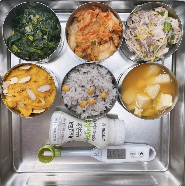 26.1.26.(월) 작성자 영양교사 작성일 2026-01-26 | 조회 56 | 본문 점심 식단 : 병아리콩밥, 어린이고추장찌개, 대패삼겹숙주볶음, 단호박아몬드샐러드, 시금치나물, 배추김치, 무항생제목장우유축산물 이력번호 : 돼지고기(국내산)_L12601123036001종일반 간식 : 딸기쨈베이글, 두유종일반 간식변경 : 목초란핑거스틱에서 딸기쨈베이글로 변경되었습니다. 작성자 : 로그인을 하셔야 작성가능합니다.