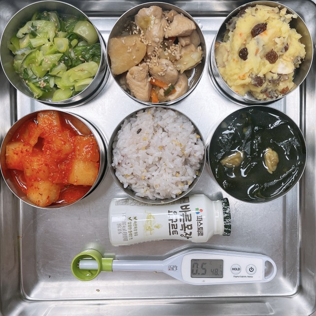 26.2.4.(수) 작성자 영양교사 작성일 2026-02-04 | 조회 57 | 본문 점심 식단 : 기장밥, 조갯살미역국, 데리야끼순살닭볶음, 고구마건포도샐러드, 청경채참깨무침, 깍두기, 바른목장요구르트점심 식단변경 : 고구마크랜베리샐러드에서 고구마건포도샐러드로 변경되었습니다.축산물 이력번호 : 닭가슴살(국내산)_L22602027228011종일반 간식 : 계란야채죽 작성자 : 로그인을 하셔야 작성가능합니다.