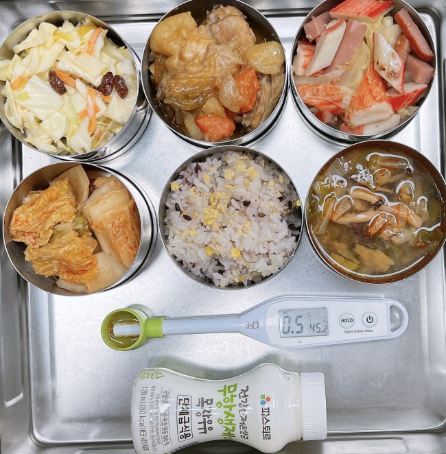 26.2.9.(월) 작성자 영양교사 작성일 2026-02-09 | 조회 54 | 본문 점심 식단 : 렌틸콩밥, 짬뽕국, 납작당면찜닭, 크레미볶음, 양배추유자청무침, 배추김치, 무항생제목장우유점심 식단변경 : 로메인유자청무침에서 양배추유자청무침으로 변경되었습니다,축산물 이력번호 : 닭고기(국내산)_L22601127228411종일반 간식 : 쿠키, 과채쥬스 작성자 : 로그인을 하셔야 작성가능합니다.