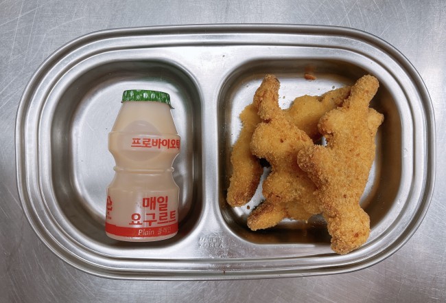 26.2.10.(화) 작성자 영양교사 작성일 2026-02-10 | 조회 52 | 본문 점심 식단 : 흑미밥, 모둠어묵탕, 돼지고기간장볶음, 명엽채조림, 과일샐러드, 배추김치축산물 이력번호 : 돼지고기(국내산)_L12601263036027종일반 간식 : 치킨너겟, 요구르트종일반 간식변경 : 치킨너겟에서 치킨너겟, 요구르트로 변경되었습니다. 작성자 : 로그인을 하셔야 작성가능합니다.