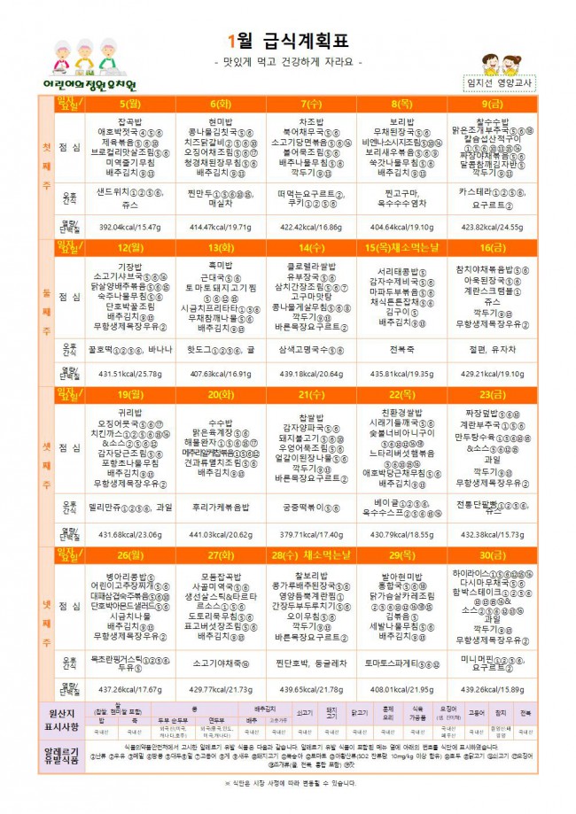 1월 급식식단표