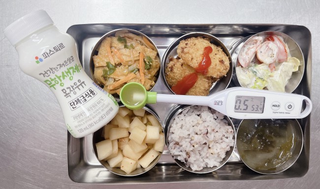 25.11.14.(금) 작성자 영양교사 작성일 2025-11-14 | 조회 82 | 본문 점심 식단 : 율무밥, 미역된장국, 미니치즈카츠&케찹소스, 어묵당근조림, 토마토양상추샐러드&흑임자드레싱, 깍두기, 무항생제목장우유점심 식단 변경 : 발사믹드레싱에서 흑임자드레싱으로 변경되었습니다.종일반 간식 : 늙은호박죽종일반 간식 변경 : 호박떡, 전통차에서 늙은호박죽으로 변경되었습니다. 작성자 : 로그인을 하셔야 작성가능합니다.