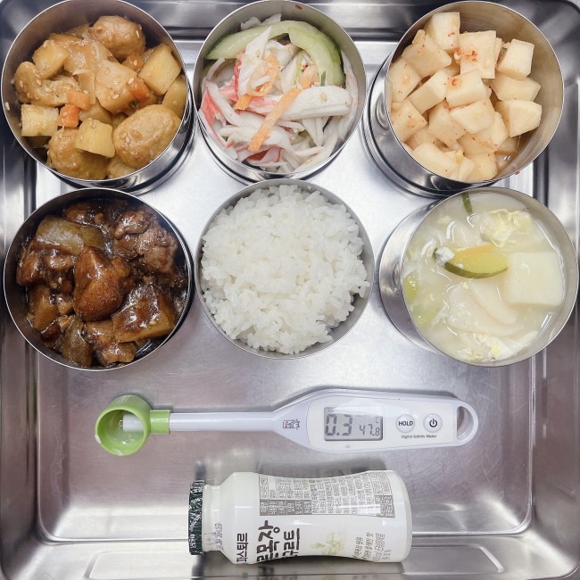 25.11.19.(수) 작성자 영양교사 작성일 2025-11-19 | 조회 80 | 본문 점심 식단 : 친환경쌀밥, 호박수제비국, 짜장닭갈비, 크레미오이무침, 고추장감자조림, 깍두기, 바른목장요구르트축산물 이력번호 : 닭다리살(국내산)_225111706402종일반 간식 : 떠먹는요거트 작성자 : 로그인을 하셔야 작성가능합니다.