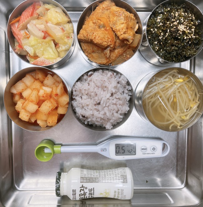 25.12.3.(수) 작성자 영양교사 작성일 2025-12-03 | 조회 56 | 본문 점심 식단 : 흑미밥, 콩나물국, 고등어무조림, 맛살채소볶음, 건파래볶음, 깍두기, 바른목장요구르트점심식단 변경 : 건파래무침에서 건파래볶음으로 변경되었습니다.종일반 간식 : 팥호박죽 작성자 : 로그인을 하셔야 작성가능합니다.