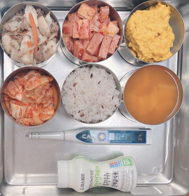 25.9.22.(월) 작성자 영양교사 작성일 2025-09-22 | 조회 73 | 본문 점심 식단 : 찹쌀밥, 오징어무국, 미니새송이우민찌볶음, 햄맛살조림, 단호박샐러드, 배추김치, 무항생재목장우유축산물이력번호 : 쇠고기(호주산)_801090200376종일반 간식 : 미니크루아상, 사과쥬스종일반 간식 변경 : 오렌지쥬스에서 사과쥬스로 변경됨. 작성자 : 로그인을 하셔야 작성가능합니다.